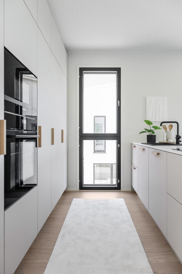 Valmistimme As Oy Fregattipihan upeiden merellisien asuntojen kiintokalustuksen.